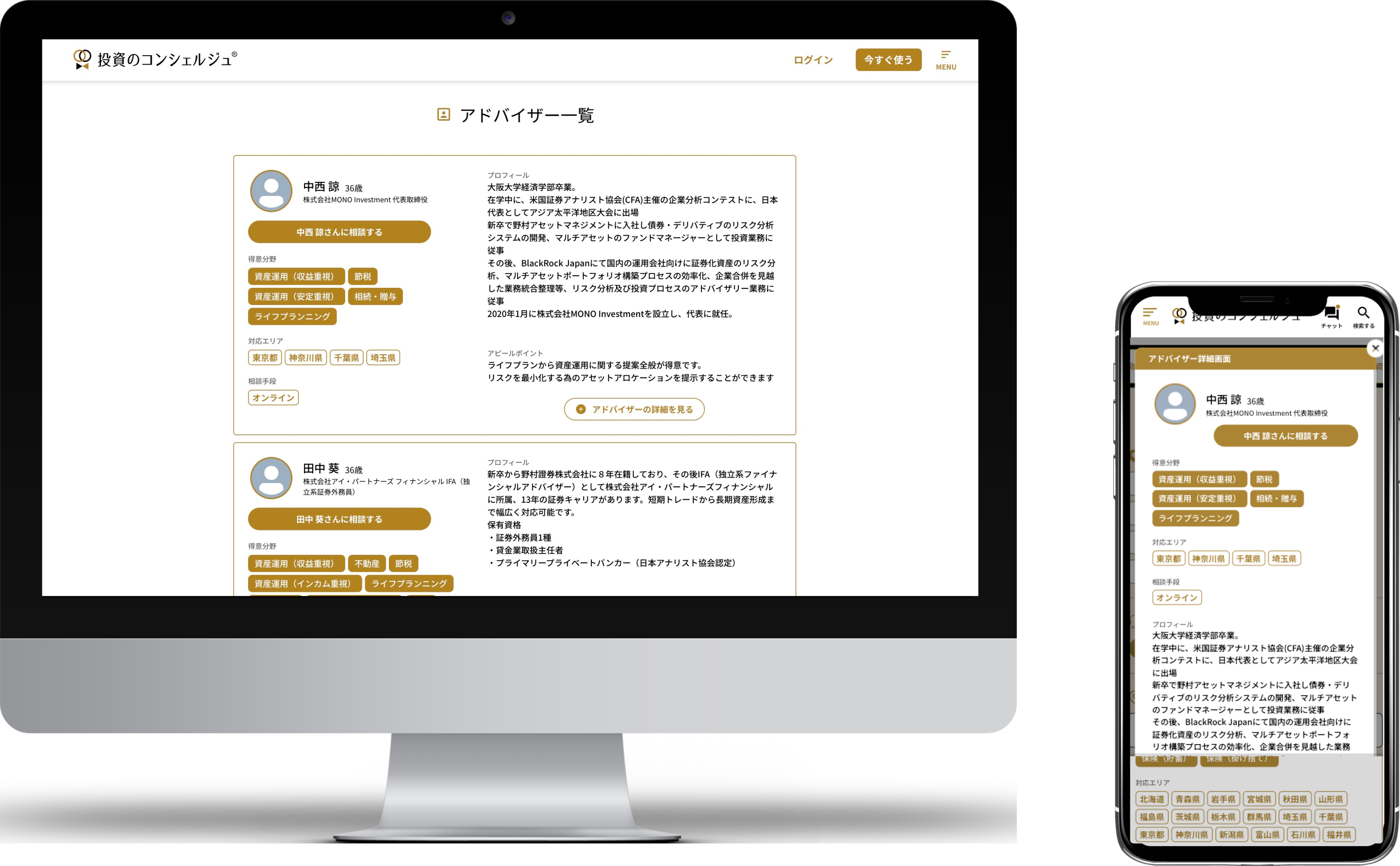 投資のコンシェルジュは資産運用のトータル支援プラットフォームです。